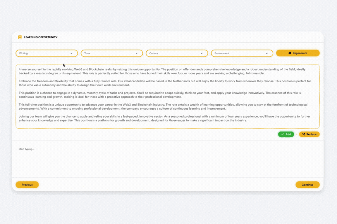 Utilizing the GPT4 model from OpenAI that is trained with the latest HR-trends from major publishers in a large variety of industries